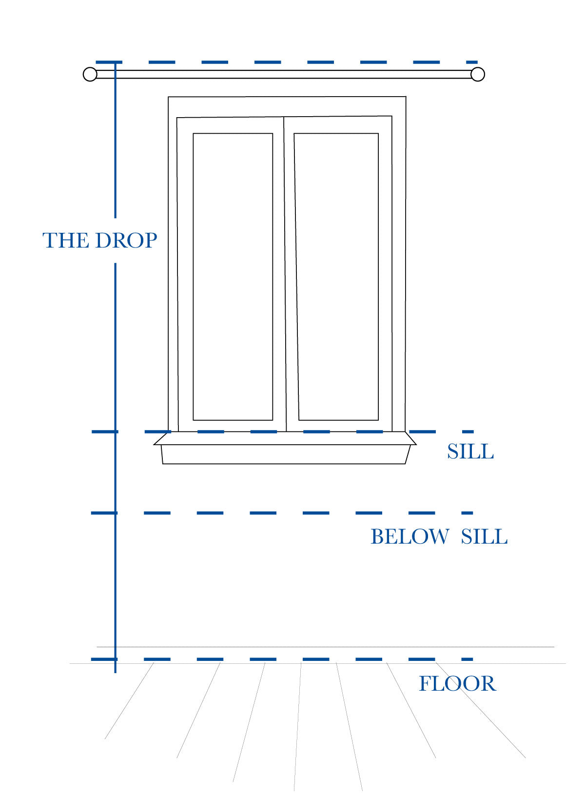 For at finde den rigtige længde til dit gardin skal du måle fra toppen af gardinet til den ønskede afstand under vindueskarmen.